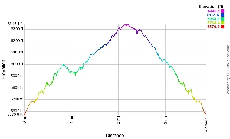 Upon the ridge, the views become more expansive and you can see some high peaks to the west if the weather is clear. Follow the trail as it rises and falls over the hilly ridge to the Anemone Point Overlook with 360 degree views. From here the trail is all downhill. Continue down and you’ll soon reach the second overlook and then close the Anemone Loop. Follow the trail back down towards Red Rocks and back to the Trailhead to finish the hike.