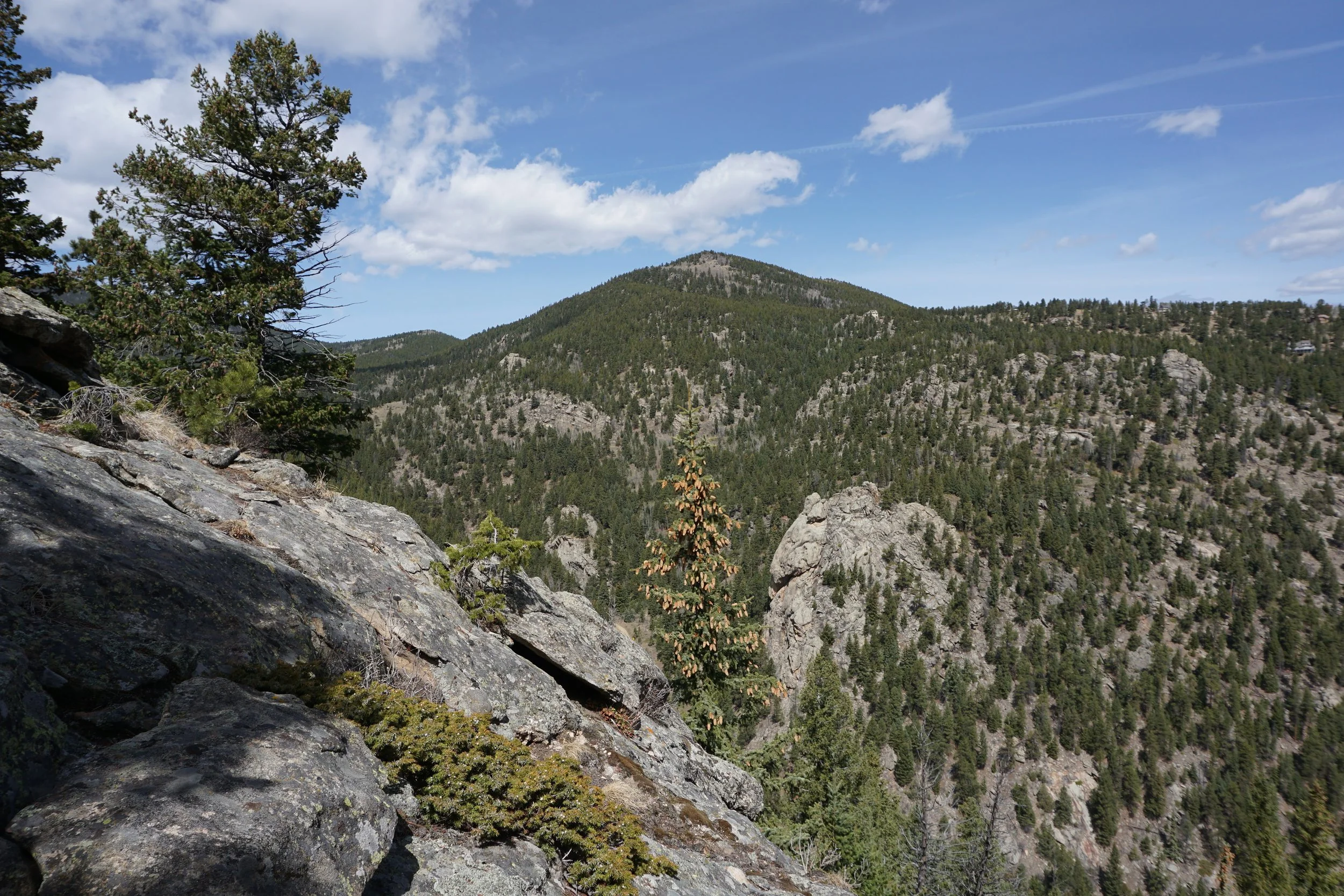 From the parking area, head west on Beaver Brook Canyon Road and bear left onto Pat Creek Road following the small trail markers. Continue through the open gate and at the fork in the road bear left again heading downhill to the closed open space gate and walk around the gate to enter the open space. Now within the open space, you'll be on dirt roads that are closed to motor vehicles. Continue along the road to a serene meadow with great views to the west of Santa Fe Mountain and the rocky outcrops along the ridge.