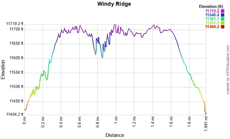 Once you arrive at the official trailhead, there is a small parking area and a clear trail heading east beyond a small interpretive sign. The trail heads straight towards the grove of bristlecone pines but you are free to explore the rest of the area off trail. If you follow the trail east as far as it goes, you will be led to the center of the grove. Hike east all the way to the edge of the flat lands, the view is terrific in this spot and looks down on the town of Alma and out to fairplay and south park. I then suggest turning left and heading north to explore more dense bristlecone forest. If you head north and bear to the west you will soon reach the summit of Windy Ridge (11,724 ft), marked by a cairn.
