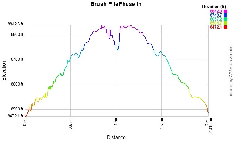 If you looking for a quick 2 mile hike, turn around here. If you want to continue following the loop, the trail turns and heads downhill. The loop continues for about a mile before linking back to the Brush Pile Trail.
