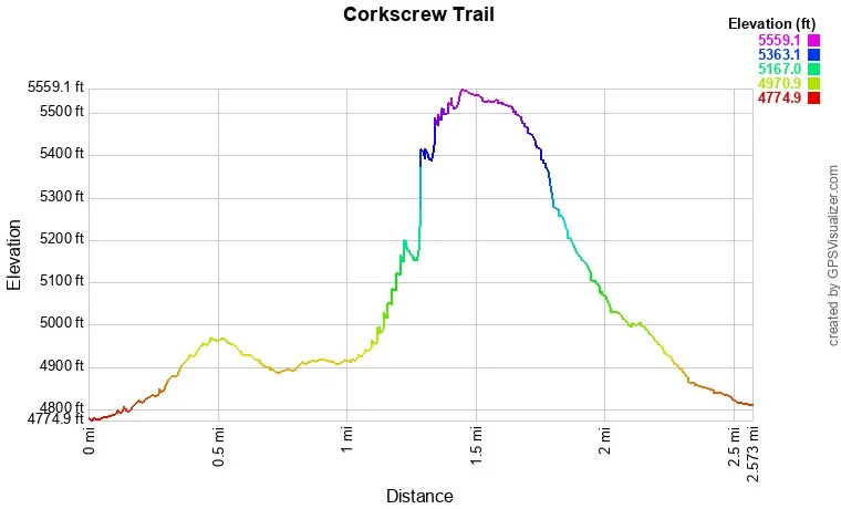 NOTE: There is a dry wash that will seem like the trail. It is easy to mistakenly start hiking up the wash, as I did. This is NOT the way to go. However, if you find yourself climbing up the wash don't fear, if you keep climbing and scrambling you will intersect with the Corkscrew Trail, but you'll miss the section that gives the trail it's name.