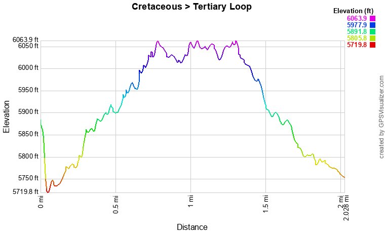 The Cretaceous and Tertiary Trails are some of the few official trails at S. Table Mountain Park. They both climb steadily (about 500 ft) to the top of the mesa allowing you access to the Basalt Loop. The Cretaceous Trail starts just before NREL and starts out pretty level. Once you reach the fork in the trail, head left to stay on the Cretaceous Trail. The trail will climb the side of S. Table Mountain overlooking NREL and Green Mountain beyond. After a short time you reach the top of the Mesa.