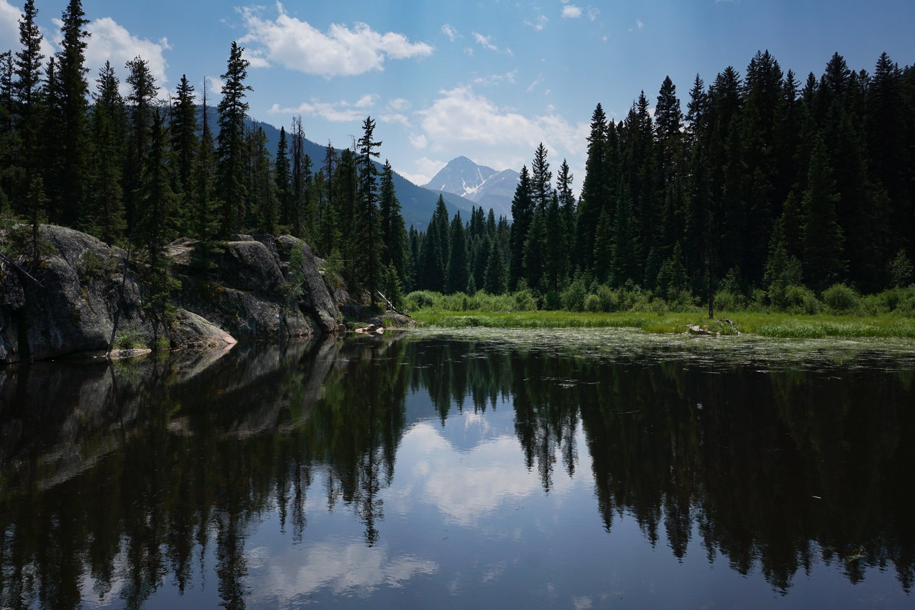 Once you find the lake, you have to work for the views of the Mt. of the Holy Cross. You need to be on the far side of the lake for the really beautiful views. On the far side you'll see a rock bar, that is your destination. The easiest way to get there is to skirt the marsh in the forest on the northern shore of the lake. You are likely to get your boots wet during this circumnavigation. Once you make it to the rock ledge, follow it to the south to the end and the views depicted in the photos. It takes a bit of work, but it's a worthy destination.