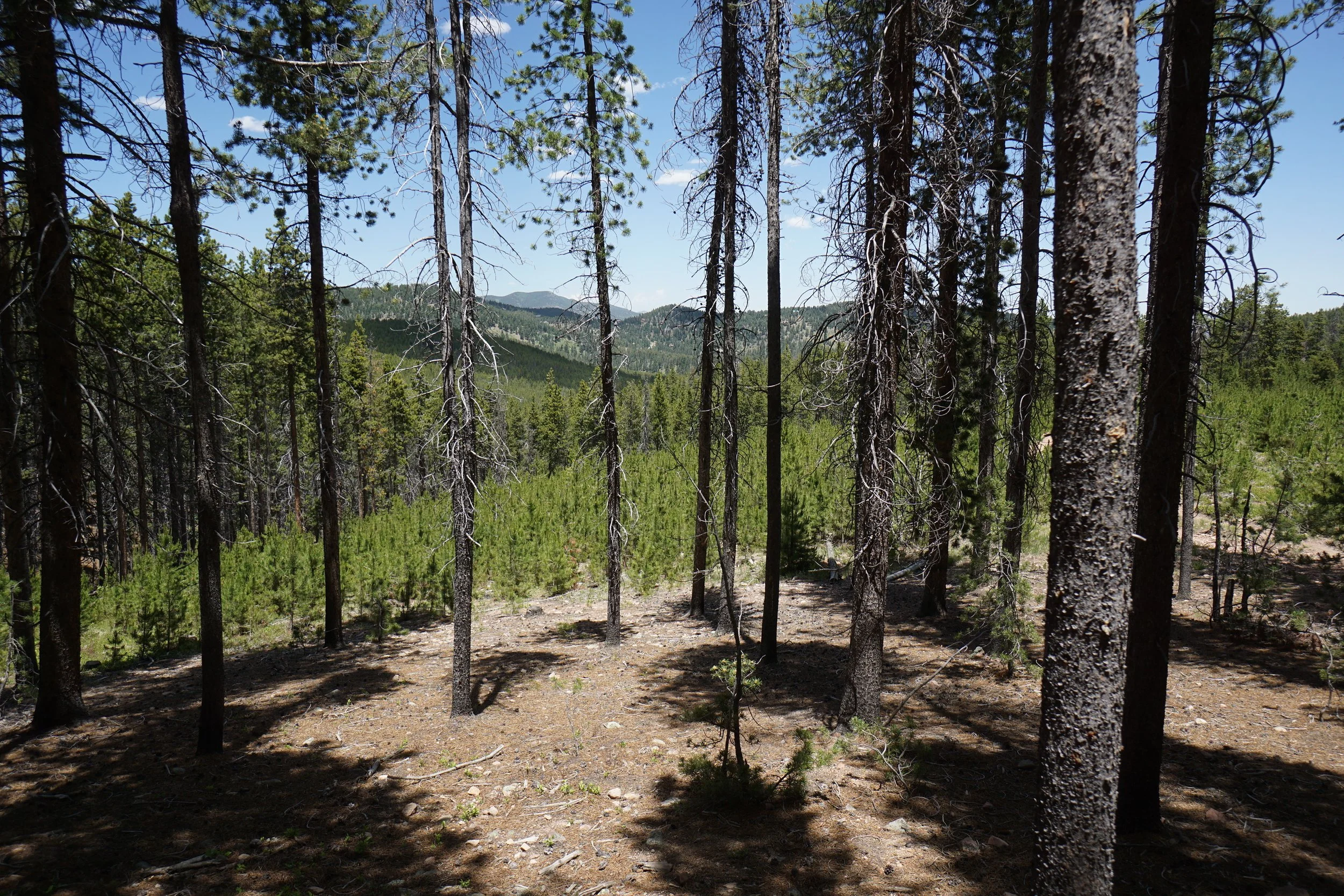 The Cub Creek Trail is a pleasant hike through the forest on a rolling trail. I have no idea where this trial leads to other than into the Mt. Evans Wilderness. I have only explored this trail for a little more than 1 mi. According to the USFS website, the trail is closed 4 ½ miles in due to property disputes so it no longer provides access to the Mt. Evans Wilderness. That being said I am curious to know if there is a good destination spot within those 4 miles as the trail is nice and shaded and close to Denver. The maps that I’ve seen do not show any features such as a viewpoint or lake, but I’ll have to go back and explore further. I’ll report back when I find some more info, but if anyone out there knows of a good destination, please write comment on this hike and let us know.
