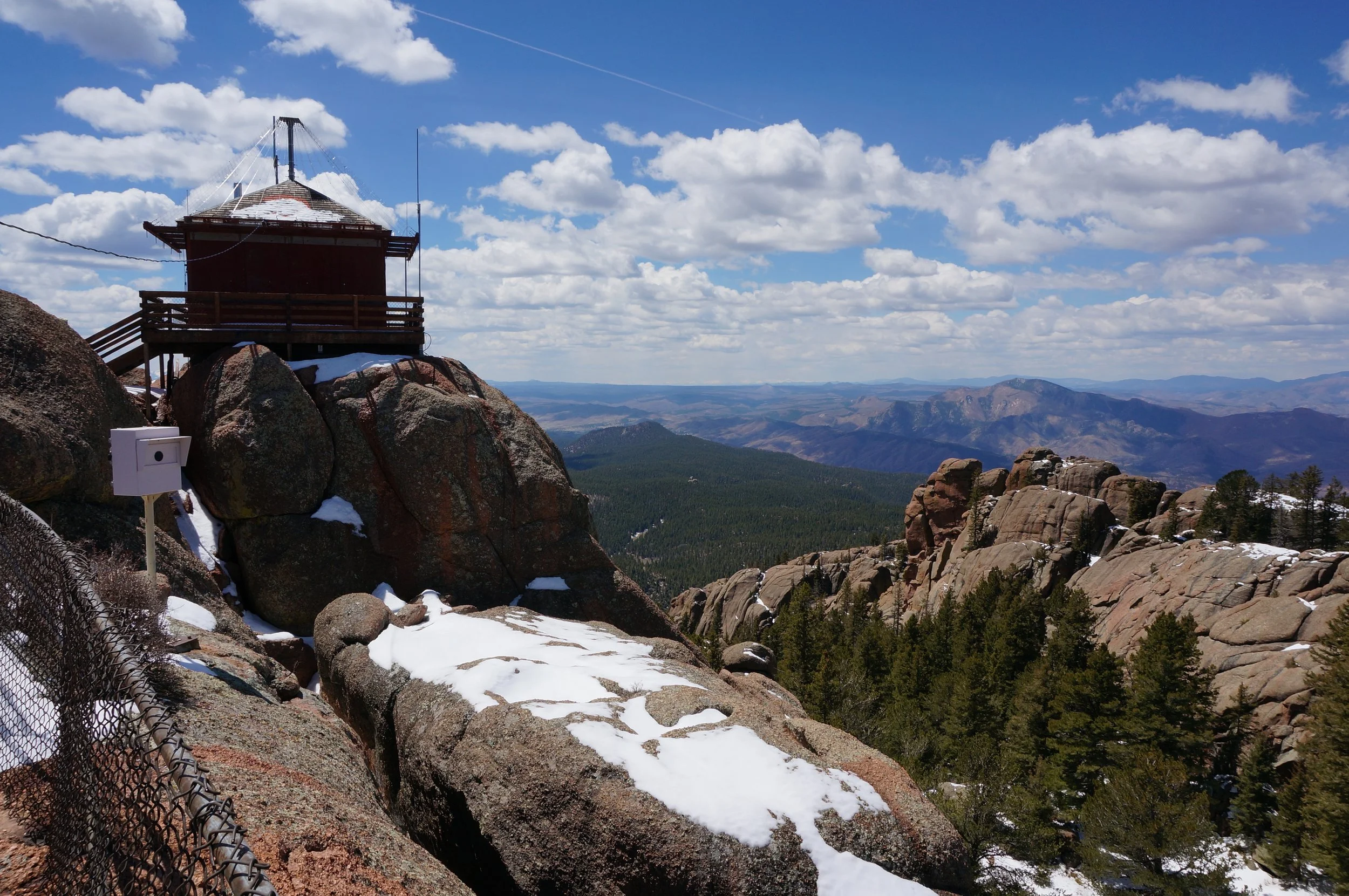 The Devil's Head trail is extremely popular and for good reason. The trail is short but steep and weaves through beautiful aspen forest (great for fall colors) and large rock formations. Views of the Rampart Range's rock outcroppings are abundant. The real joy of this hike however, is the fire lookout tower. The tower was built over 100 years ago and has a view that simply must be experienced. Once you arrive at the base of the stairs you may have to wait for folks to come down before you head up, but patience is a virtue here. Climb the many metal steep stairs, don't look down, and prepare to be amazed. There is often a volunteer on hand to answer historical questions. Be sure to look south for an incredible view of Pike's Peak.