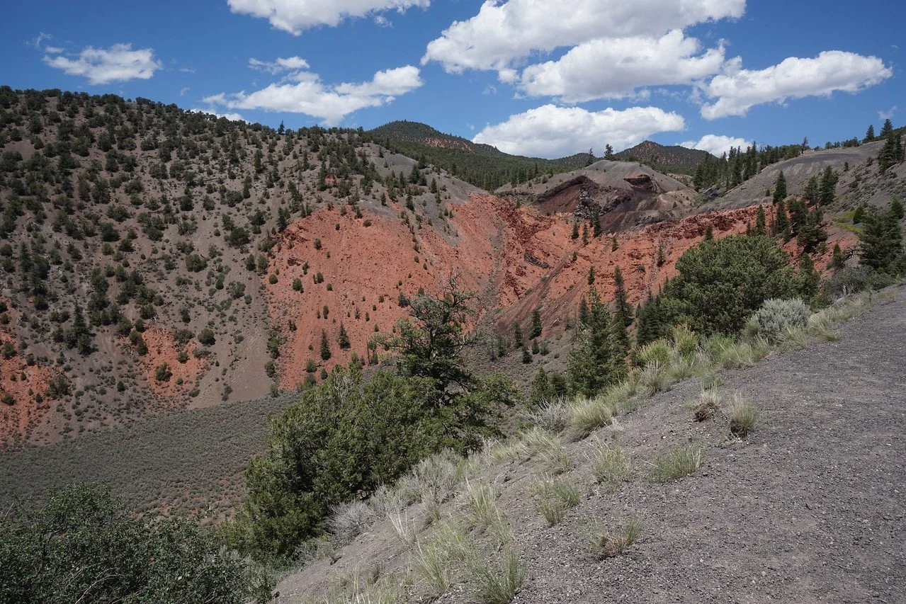 The drive up to Dotsero Crater is exciting, not just because the narrow dirt road is...sketchy...at times, but because you are driving through an unexpected volcanic environment with pumice everywhere, shiny black boulders, and red rock hills all around. When you reach the trailhead, the obvious turn-out with a fence and a trail sign for "Castle Peak". your choices begin.