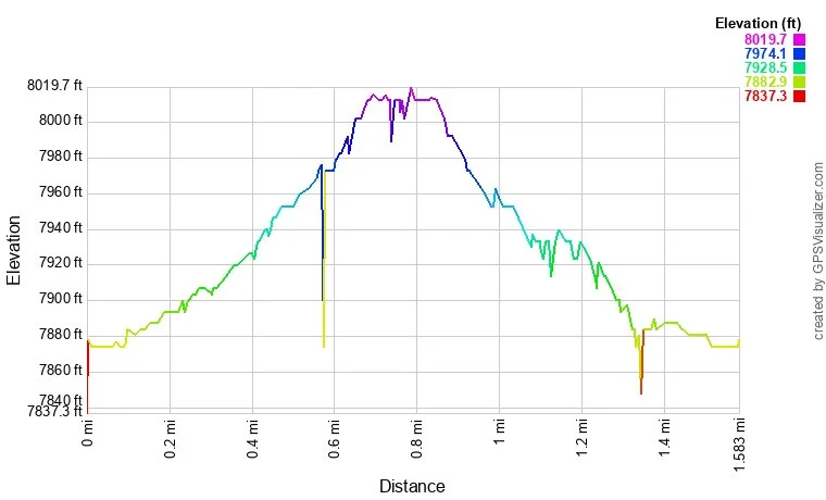 The trail starts from the northern part of the campground loop road and rises gently to the edge of the hill for some nice views across the area and into the National Forest. The trail is only 0.3 mi long each way so if you want a slightly longer hike, park at the entrance to the road and hike the dirt road that forms the campground loop.
