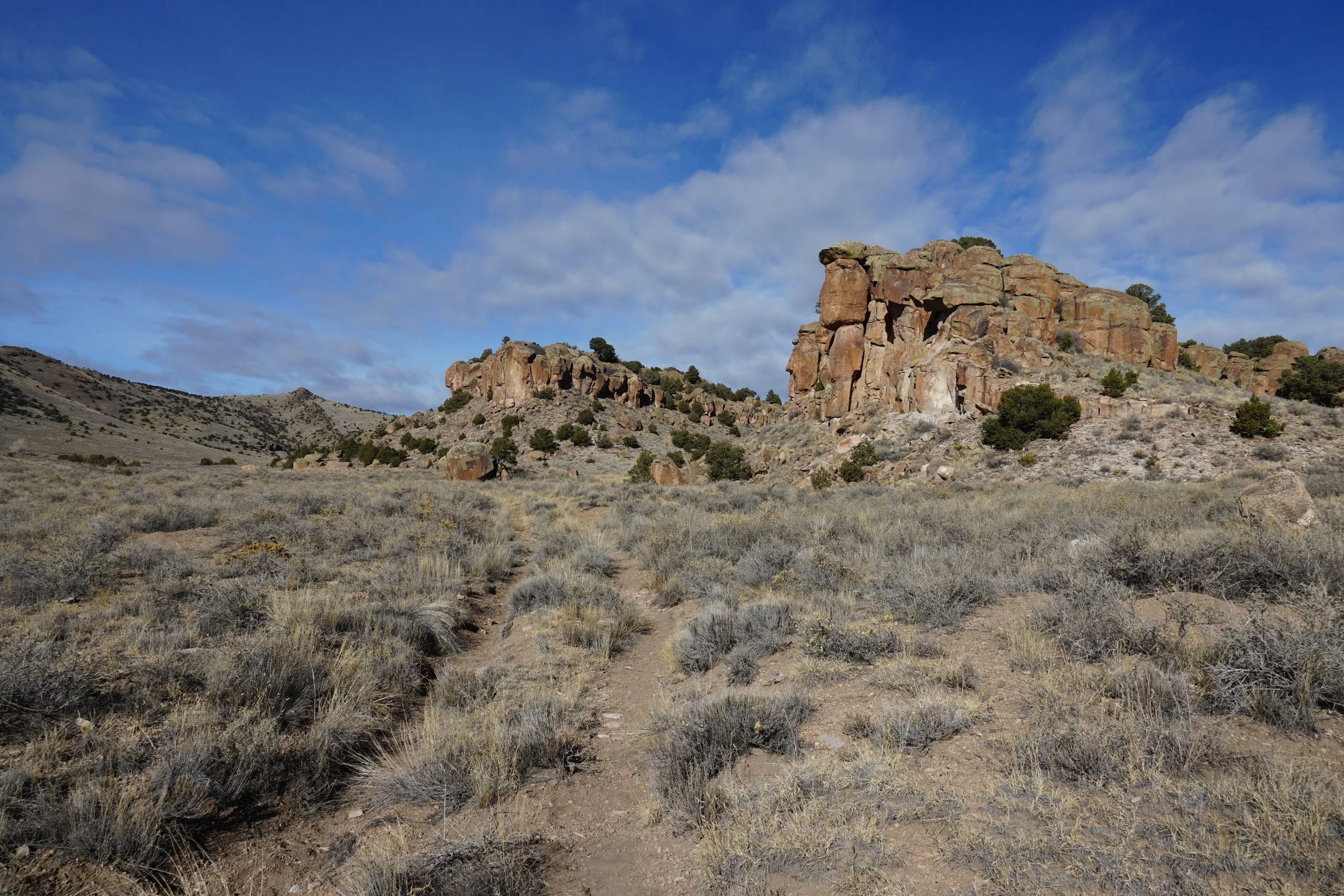 From Del Norte, head north on State Hwy 112 and turn left onto Grand Ave. Pass the Elephant Rocks South and area and continue north on 112 to the Loop area about 1.5 mi further. Turn left onto English Valley Road, a good dirt road, to the parking and trailhead.
