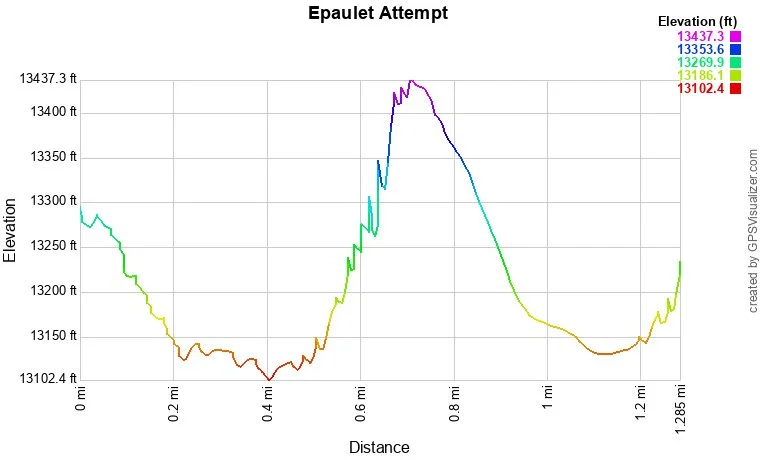 This description is really more of a "how not to" summit Epaulet Mountain. Most importantly, don't hike above 13,000 ft when storm clouds are present, just don't do it. That's easy to say now, but in the moment, we all sometimes succumb to poor judgement. However, let this serve as a reminder, just don't do it, it's not worth the danger, the mountains aren't going anywhere. Lecture over.