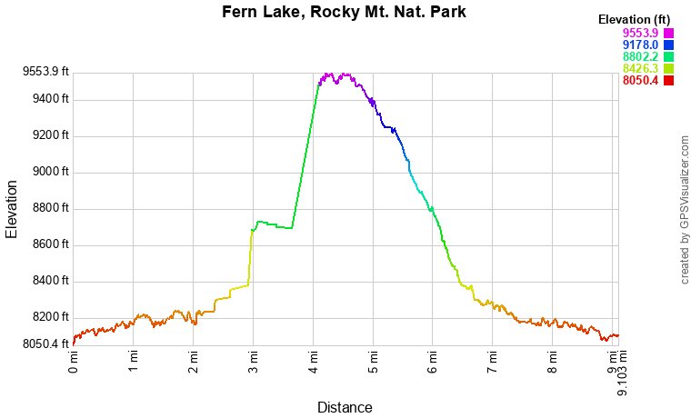 The trail is amazing. In the early winter there is barely a soul in the park, but beware if you go during the summer, the crowds can be overwhelming. As you approach Fern lake, there are mountain views in every direction and Fern Falls is spectacular. When you reach Fern Lake head left to the eastern part of the lake and a small bridge. The view from just past the bridge reminds you why this is a National Park. The Gable, Little Matterhorn, and Notch Mountain tower over the lake and beckon you to travel onward. If you do have the time and energy keep heading up the trail to Odessa Lake, the mountain's majesty keeps getting better. Stay here as long as you can and explore the shoreline. In winter the trail from here to Odessa Lake gets immediately less traveled, if you didn't need snowshoes up till now, you will once you get to the western shore of Fern Lake. In winter, given the added mileage at the beginning, Fern Lake is a substantial hike and worth every snow trodden mile.