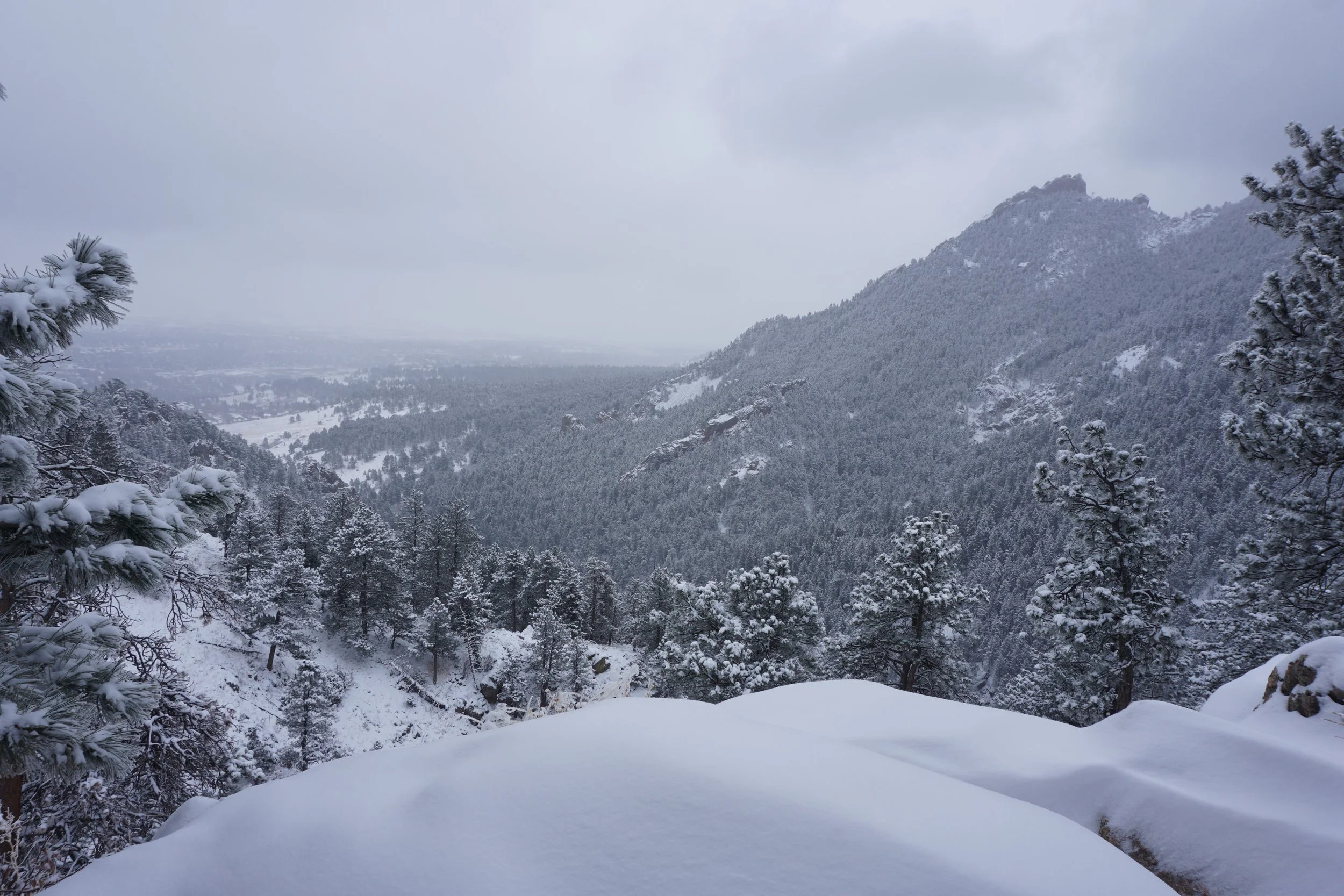The Boulder Mountain Park is one of my favorite places to go hiking. That being said, I tend to avoid it in the spring and summer due to the crowds. My favorite time to hike here is in the winter during or right after a heavy snow storm. There is something about the way that the snow coats the rock formations that gets me every time. There are fewer hikers, snowshoes are almost never needed, and the area takes on the feeling that you are hiking in a remote wilderness. The Flagstaff Trail is maybe the perfect trail in these conditions.