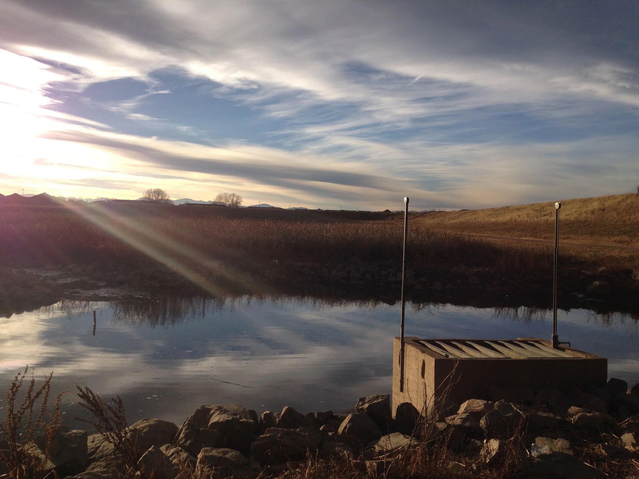 This short hike/walk through a suburban Denver park combines a natural area hike with a stroll through a nice neighborhood park and the views of the Front Range are spectacular. Starting at the Reservoir, follow the gravel path along the rim of the reservoir. By the way, the Reservoir is mostly dry. The bed of the reservoir is now made up of wetlands with a small creek running through the middle. From the rim, take the stairs or ramp down to the bed of the reservoir and follow the dirt trail as it loops along the reservoir. When you reach the south end of the reservoir, switch to the paved trail as it loops around the giant sun-dial and connects to the beautifully manicured Great Lawn Park.
