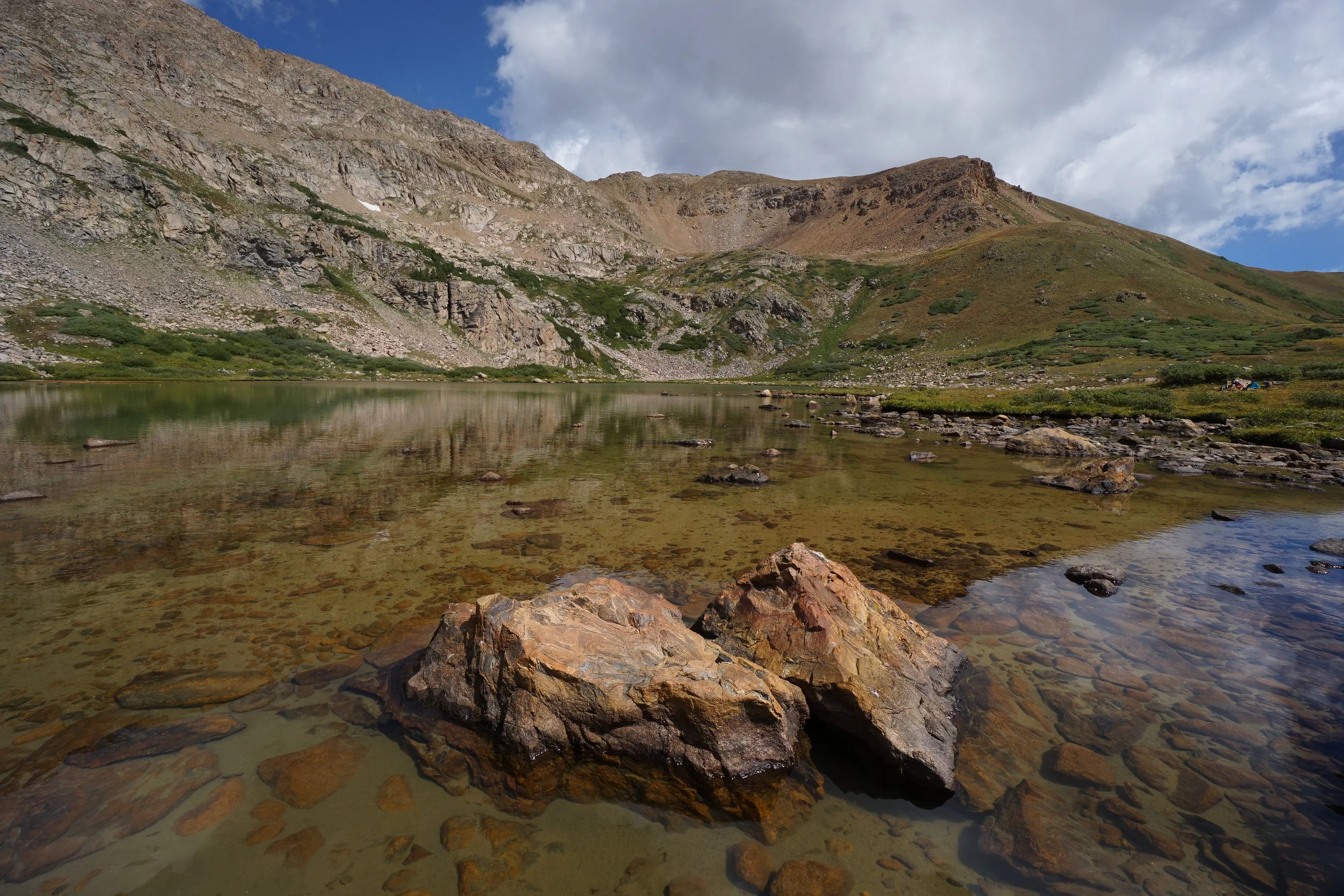 As you approach Herman Lake at about 3.3 miles, the trail gets a little steeper until you finally arrive at a broad shelf at 12,000 feet with Herman Lake stretched out under the Continental Divide.  The shore of Herman Lake is peaceful and serene with many flat rocks to sit and relax.  If you’re satisfied, then this is the turn around point.  However, if the views of The Citadel are just too tempting, then you can continue the hike for another .8 of a mile to the base of The Citadel.