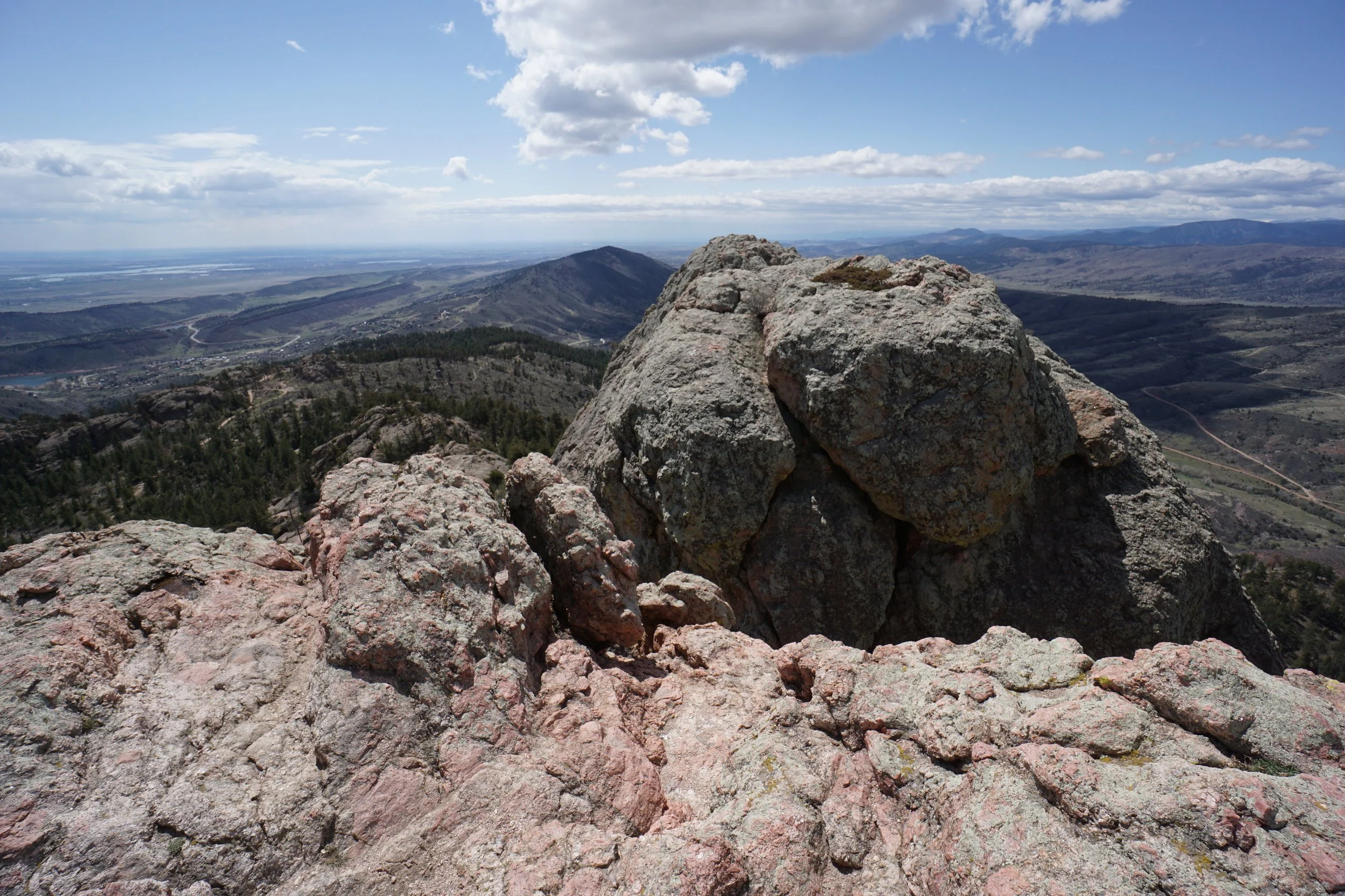 Climb up the rock face, again it's obvious where to go.  You'll need to use your hands here for a brief class 3 climb to the top of the ridge.  The summit ridge is exposed, but wide enough to be safe.  The 360 degree views open up and you can rock hop to wherever you'd like.  The obvious stopping point is a cliff that serves as the end of the northern horsetooth.  Enjoy the views and the exposure until you are ready to head back down.