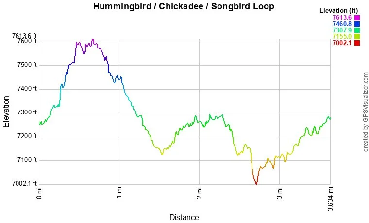 The Chickadee trail mainly leads to the park's campground but it makes for a nice hike across rolling fields and small canyons. Once you reach the campground go back the way you came (unless your camping...). When you reach the trail junction with the Hummingbird, head south and cross Foxton Rd again, this will put you onto the Songbird trail which you can follow back to the parking area. The Songbird trail is a beautiful trail, especially in the early season when the creek it follows is flowing. It makes for a nice way to finish out the hike.