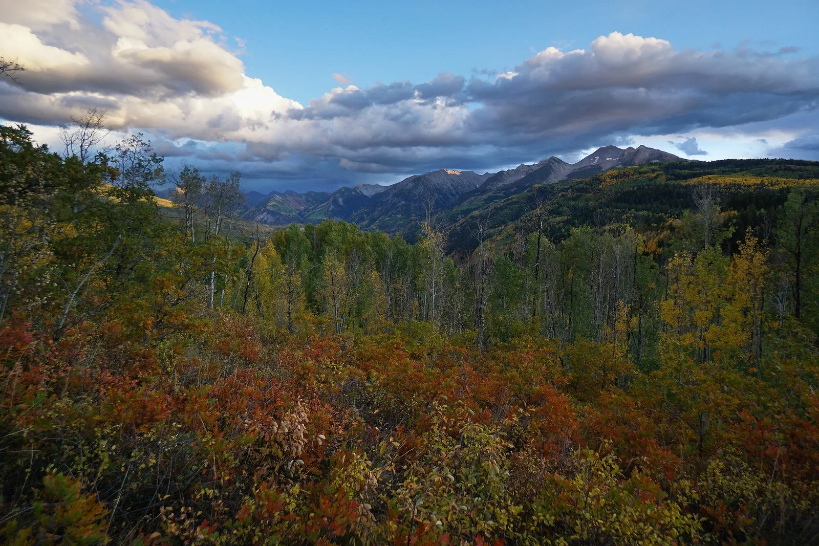 The trail climbs up the southern flanks of Huntsman Ridge through dense groves of old growth aspen trees. The trail is definitely steep but it mellows out the further you hike. From the trail there are obscured mountain views but if you keep an eye out you can find openings with massive views of the Elk Mountains. One such view (see the sunset photos at the end of the gallery) is located just minutes from the trailhead, but you need to look out for it as it's not all that obvious, we only found it on the way down.