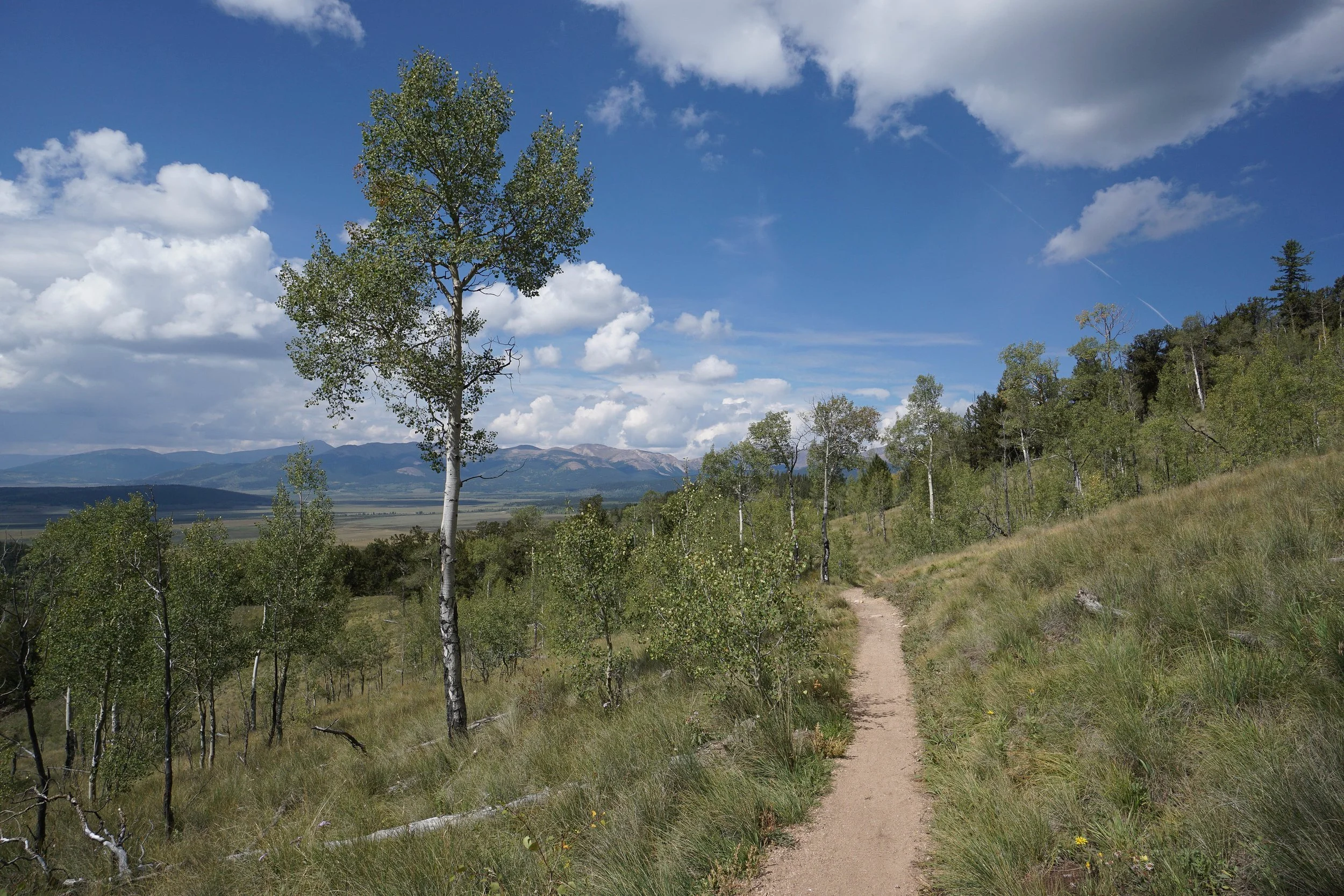 From the parking area on the north side of Hwy 285 find the Colorado Trail Trailhead next to the road leading to the campground.  Almost immediately the trail will start to weave through aspen forest.  On September 10th, the trees were just starting to show their fall colors, aim for September 20th for peak colors.  Along the way various roads and social trails will split off, but stay on the easy to follow Colorado Trail.