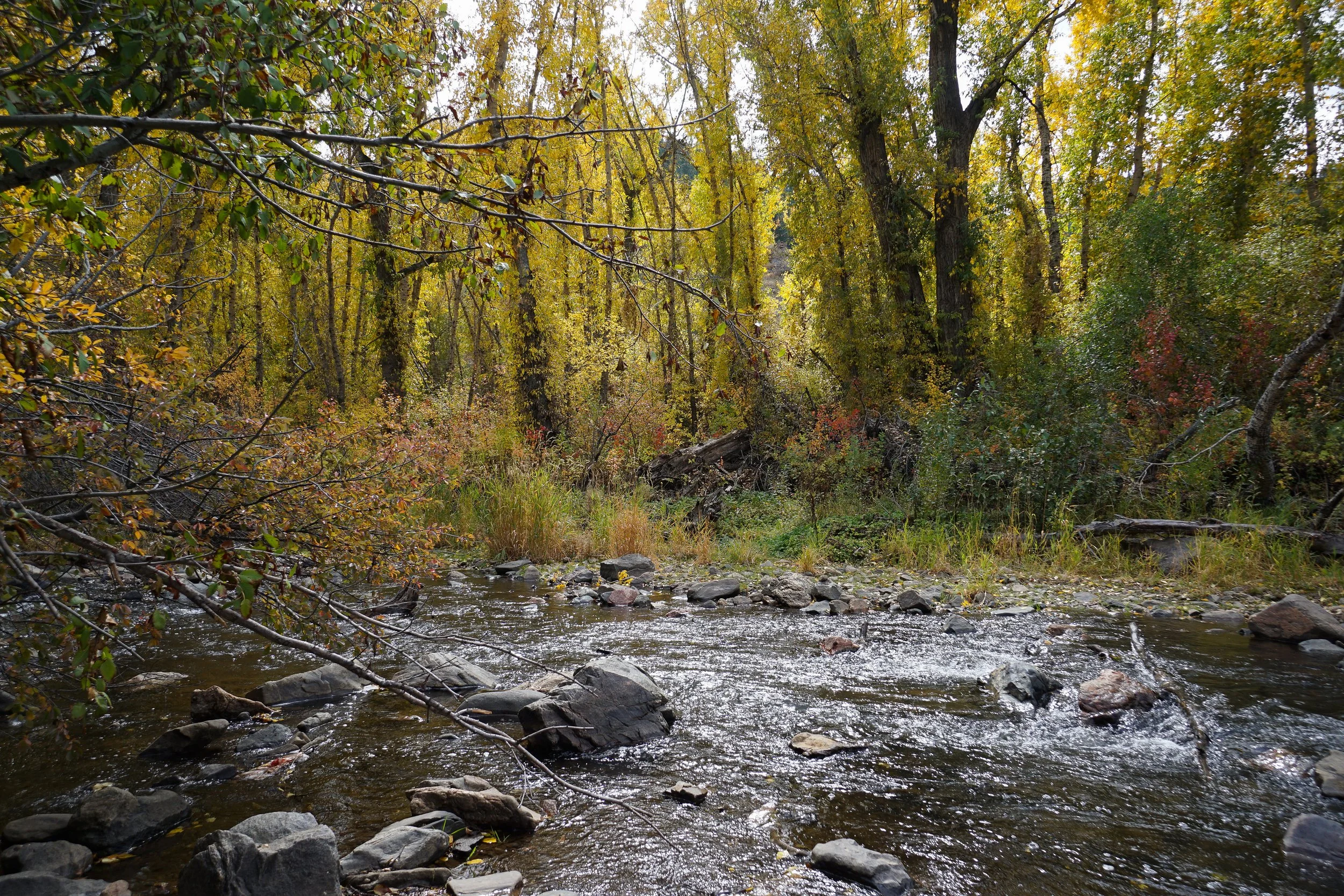 Once you return to the creek you have a few options.  For this hike description, and the standard loop, cross the Dipper Bridge and turn right along the wide Bear Creek Trail to the parking area.  You can also, cross the Dipper Bridge and head right, but turn off onto the creekside trail and return to the parking lot by following the creek a little further.  You can also take the Castor Cutoff Trail before crossing the Dipper Bridge and return to the Ouzel Bridge for a longer (2.3 mi) hike.