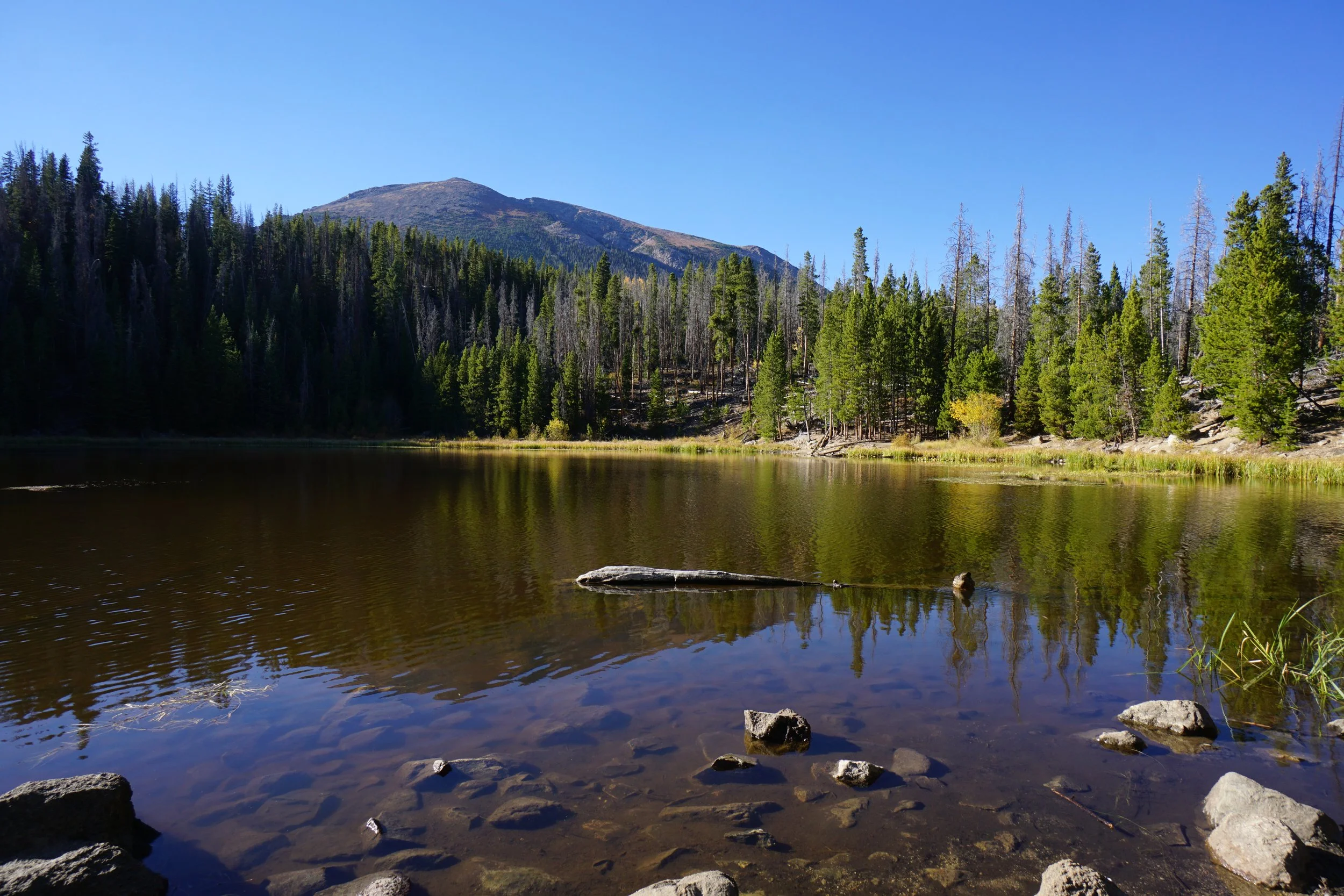 The lake itself is a pleasant spot to relax and take in the view of Buffalo Peak looming over the trees. This is a very popular hike, especially from the Meadow Creek Trail, and especially in the summer. Both trails are at their best in the fall, last weekend in September should be about prime. The hike is close to the tri-towns of Dillon, Silverton, and Frisco so access is pretty simple. Beer and food from Outer Range Brewery is a must!