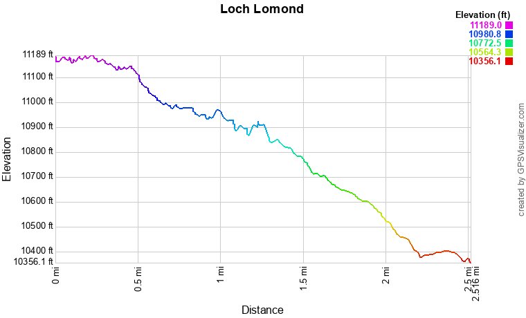 Loch Lomond itself is a large reservoir with a wide dam across the eastern shore. There is a trail along the entirety of the Loch, but you'll have to cross the waterfall at the far end to get completely around. There are also a few hiking options when you get to the Lock. You can follow the wide road up to the south of the lake and climb up to Lake Caroline; follow the trail to the west of the lake (towards the divide) to explore Reynolds, Stewart, and Ohman Lakes; or cross the Dam and pick up the trail leading up to James Peak. I highly recommend taking the trail up to James Peak at least for .5 mile, the view looking down on the Loch and the nearby lakes is phenomenal.