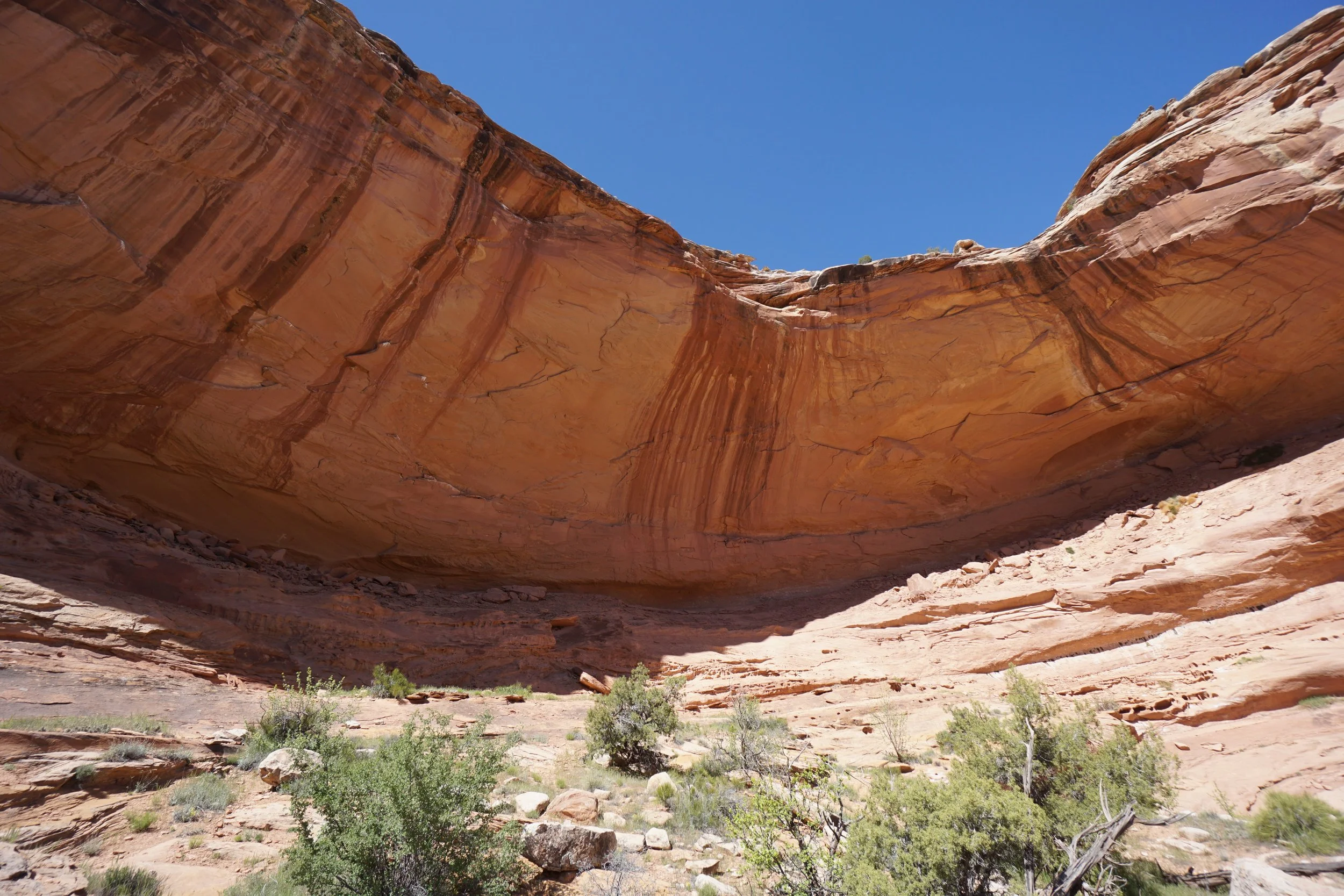It’s at this point that the canyon walls really start to soar. The further you hike down the Canyon, the more impressive the canyon becomes. Along the way, there are numerous alcoves to explore with the largest being designated by a trail marker and a short detour. After the alcove, the trail passes through a lush(er) area as you near the Colorado River and the mouth of the canyon.
