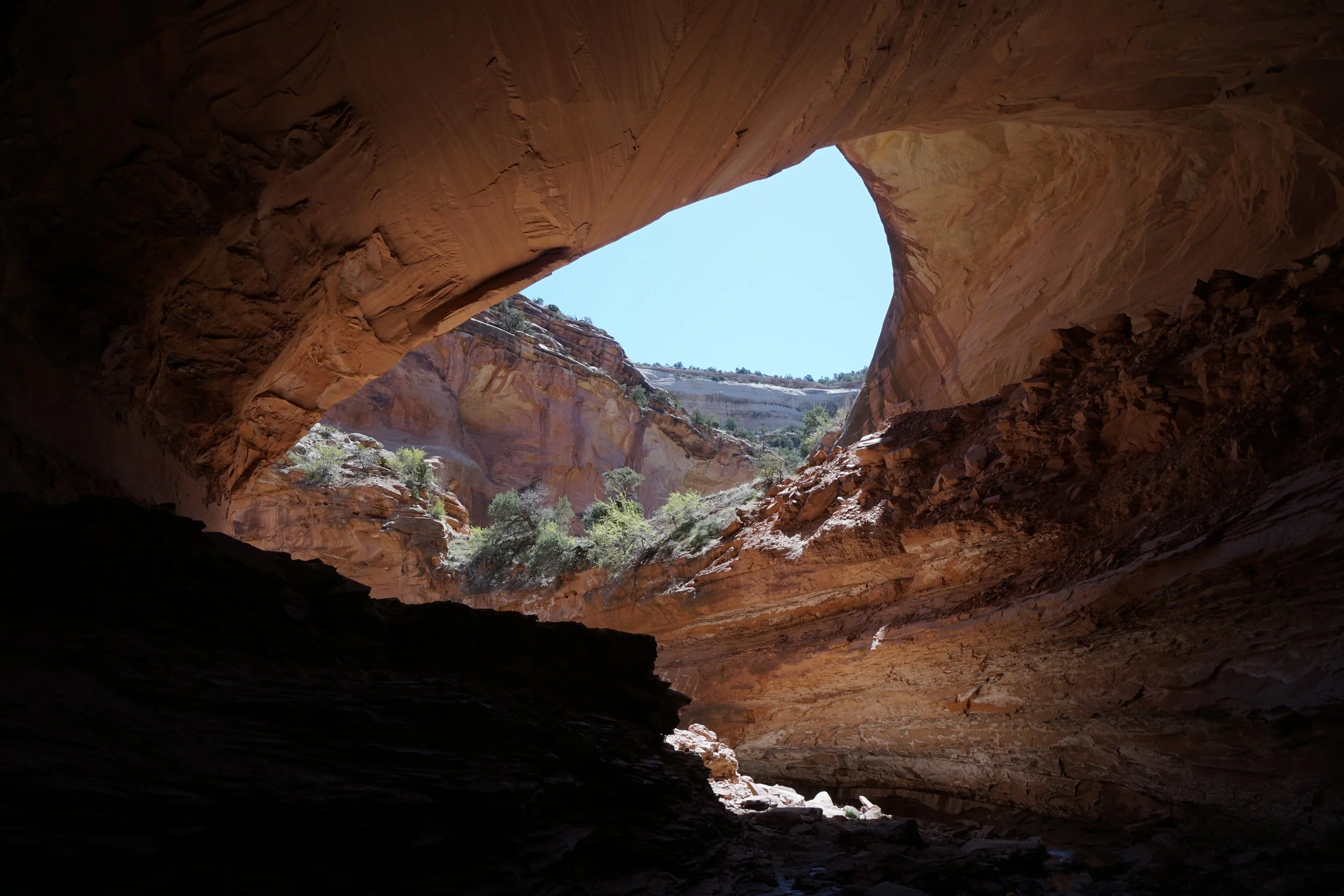 Once on the canyon floor, the trail evens out and passes through lush desert brush as it works its way up-canyon. At this point, you may be wondering if you missed the alcove, keep hiking, you will know it when you see it. The Alcove is huge! It’s unmissable and it opens like a gaping maw in the canyon wall. The Alcove was/is carved through the rock by the creek that carved Mee Canyon in the first place. You can walk into the Alcove and follow the creek around a tight bend and out the other side of the Alcove. The trail ends at this point so spend as much time in the Alcove as you want, regain your strength, and remember, you still need to climb out of the canyon.