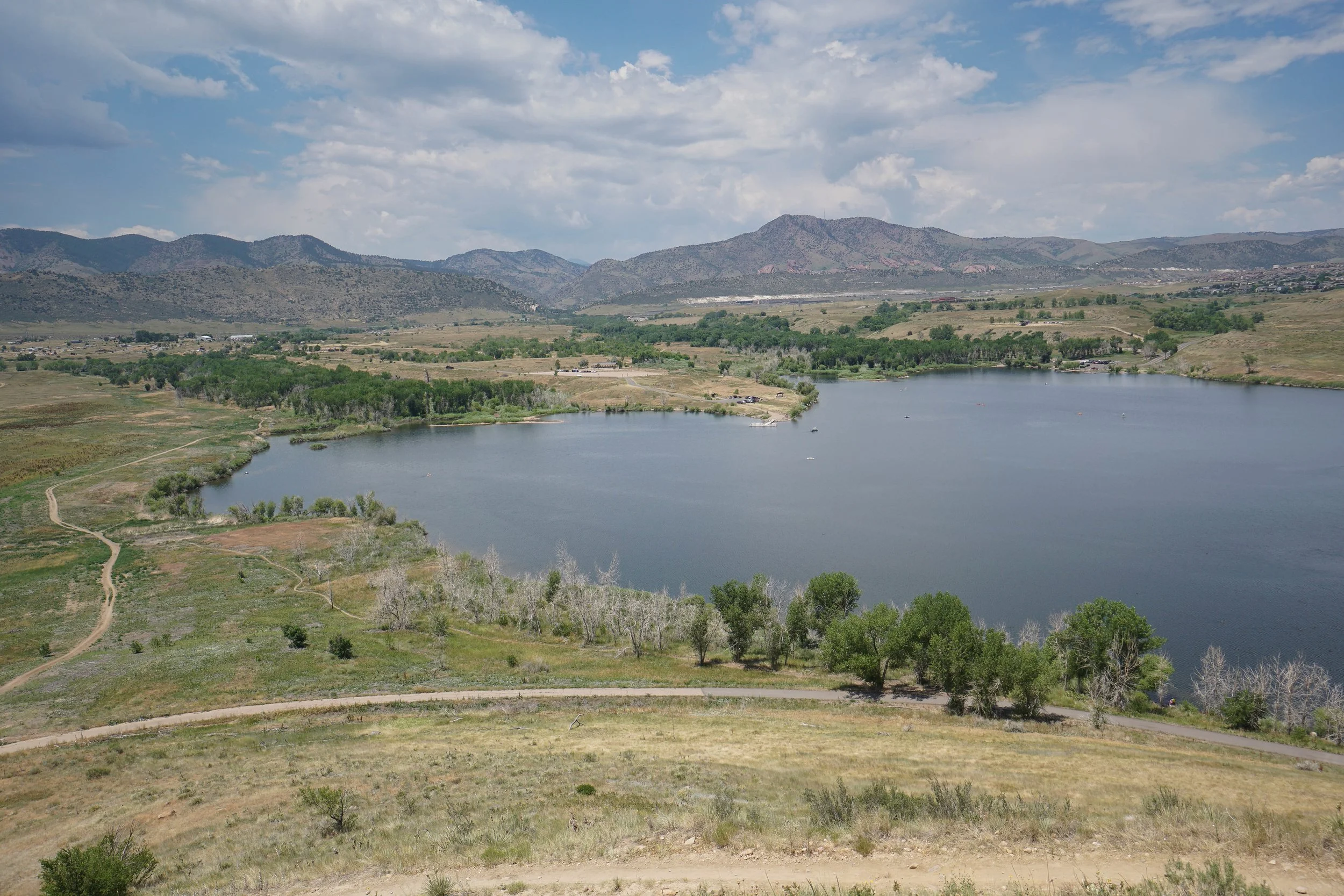 At the top, you'll find the Homestead Golf Course, bathrooms, and usually, a water cooler.  Continue past the golf course and descend a little to a wonderful viewpoint with a bench, picnic tables, and terrific views of the Front Range foothills.  The views of Mt. Morrison and Red Rocks Park behind the lake and Green Mountain to the north are brilliant.  Follow the same route back to the trailhead.