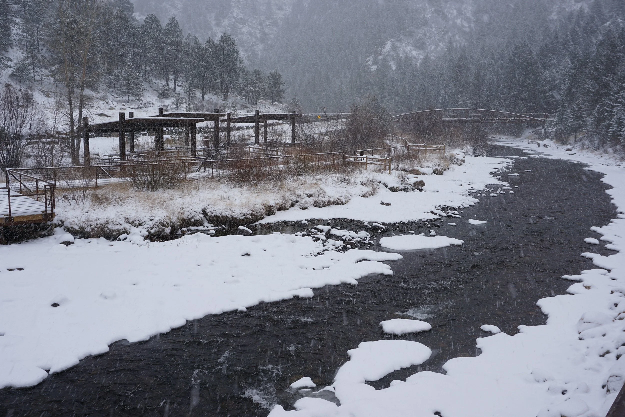 Although, still under construction, the Peaks to Plains Trail has already proven to be a very useful resource.  There is no better example of its usefulness for hikers than during a winter snow storm.  The trail provides a safe and relatively easy way to hike through Clear Creek Canyon in the cold, quiet, snow.