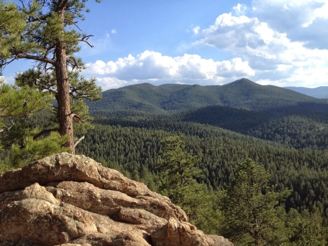 Corwina Park is one of Denver's mountain parks connected by the Bear Creek Trail (BCT), along with Little Park, O'Fallon Park, and Pence Park. While the BCT is predominantly used by mountain bikers, Corwina Park does have a hiker only trail that leads from the parking lot, through pine and aspen forest, up to Panorama Point. This rocky outcropping has great views of the Bear Creek Valley as well as Mount Evans and is a worthy destination. Once at Panorama Point, you can either go back the way you came or follow a faint social trail past Panorama Point and down to the BCT making the hike a small balloon loop.