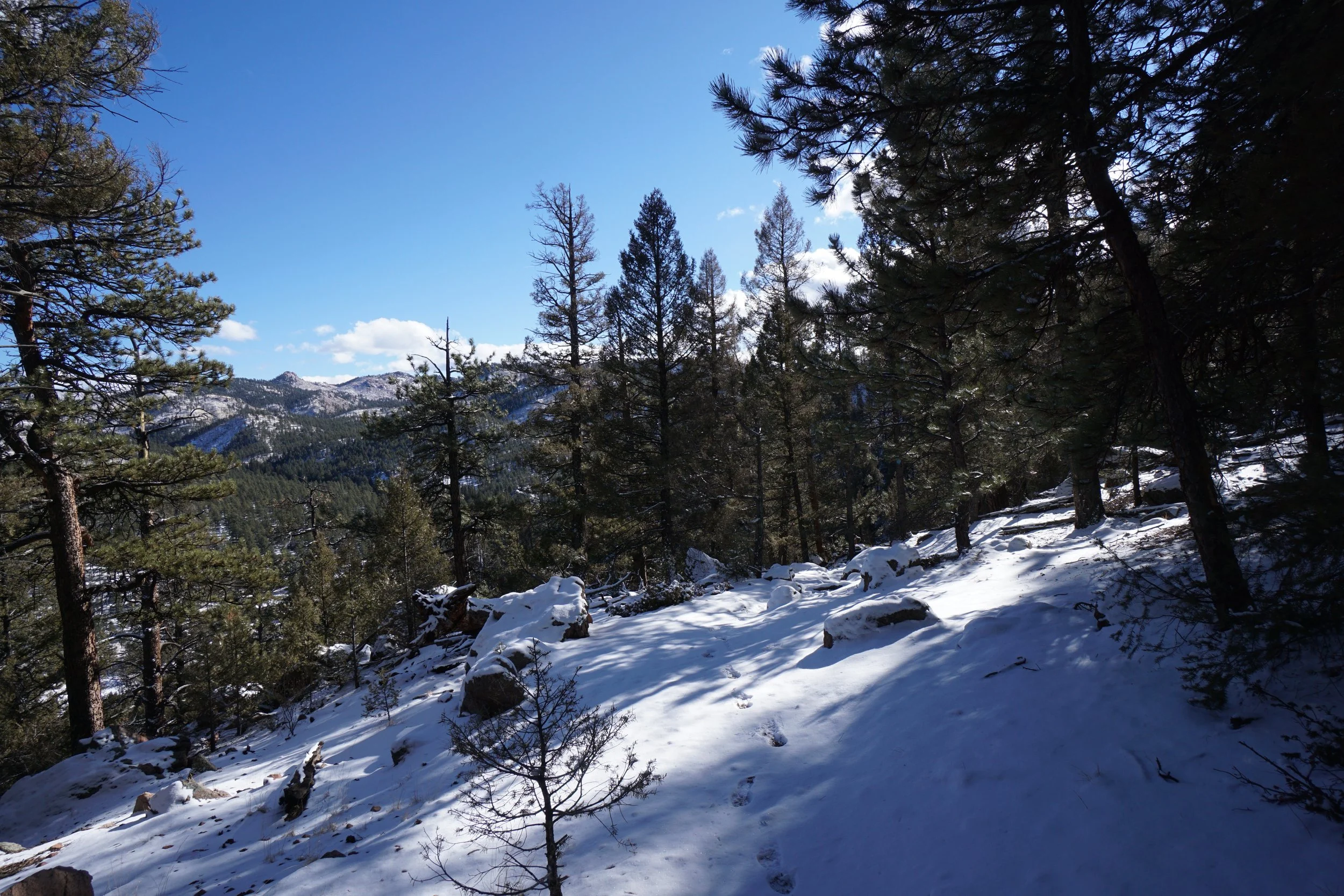 There is nothing mind blowing about this hike, but it is scenic and it is quiet, at least, it is in the winter. The hike is close to the Happy Meadows Campground, so I would imagine that the trail gets some visitors in the summertime. However, this area of the Pike National Forest is generally pretty quiet…unless my kids are hiking, in which case it’s loud…very, very loud…