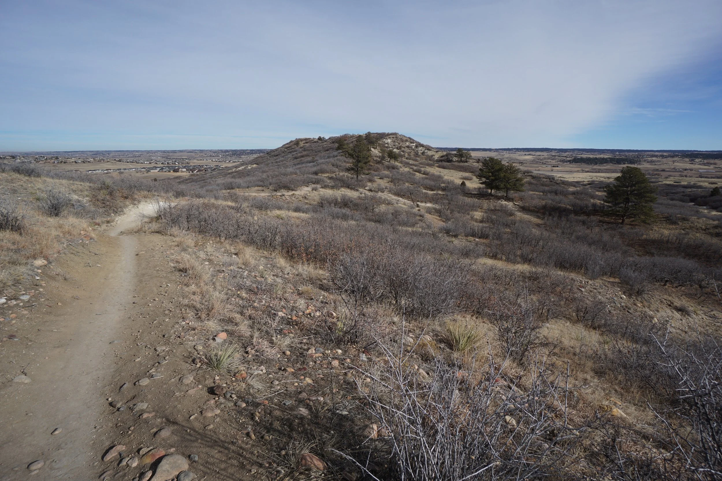 The Rocky and Pleasant Pass Loop is both rocky and pleasant... The hike explores the northern half of Hidden Mesa and drops to the valley floor before regaining the mesa top. Along the way views of the Front Range mountains, foothills, and communities keep you entertained. The hike is relatively easy making this a good one for families looking to spend a few hours exploring the mesas of Douglas County.