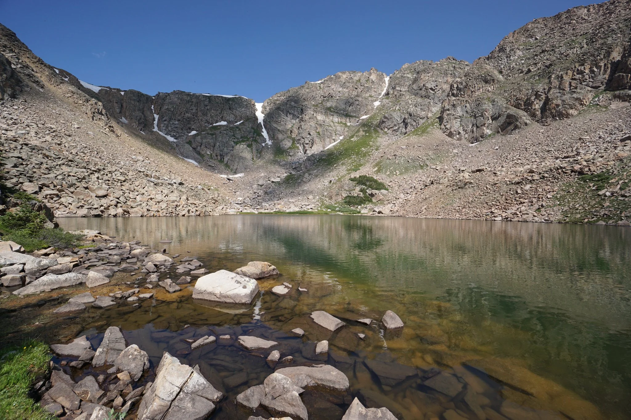 The trail gains elevation quickly, crosses meadows, and weaves through rock gardens until it reaches the base of the cirque surrounding Galena Mountain. The views of the Holy Cross and Mt. Massive Wilderness's high peaks to the southwest are incredible as you near the cirque. When you enter the cirque, the trail drops down to the lake shore. At the lake, there are terrific areas to explore, great camping spots, and some perfect spots for relaxation. Surrounding the lake are the rocky ridges leading up to Galena Mountain forming a stunning rock wall.