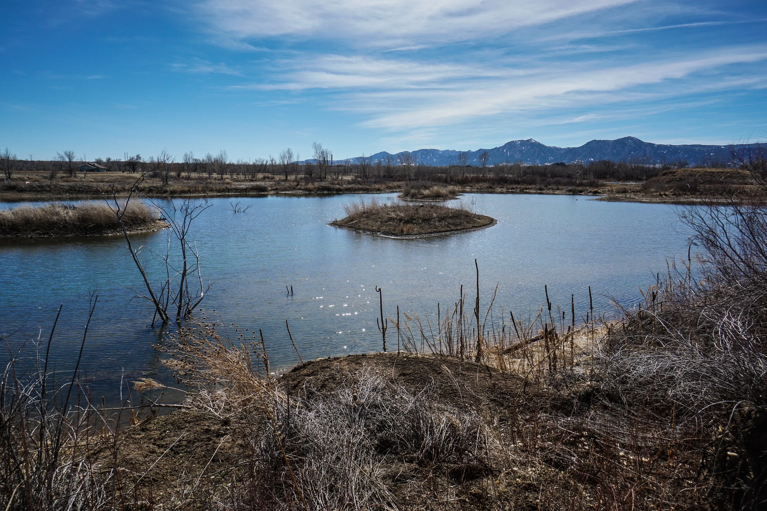 The Sawhill Ponds and Walden Ponds are a wonderful area for easy nature hiking in the plains east of Boulder. When the snow in the foothills is melts into mud, the drier plains can be a great option. Don't come here searching for solitude, but the views of the Front Range behind the reflective waters effectively drowns out the other visitors.