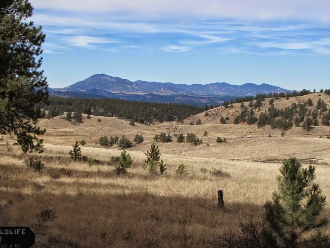 The Shootin' Star Trail is a good option for a longer hike in the park. The trail starts by following the Hornbeck Wildlife Loop for 1.1 miles to the junction with the Shootin' Star Trail and the Twin Rock Trail. Make a right (southeast) to choose the Shootin' Star Trail. The trail then rolls though Ponderosa Pine forest and open meadow for the next 1.2 miles. Look out for the great views of Pike's Peak during this section. The trail ends at a picnic area and trailhead on Lower Twin Rocks Road. Go back the way you came.