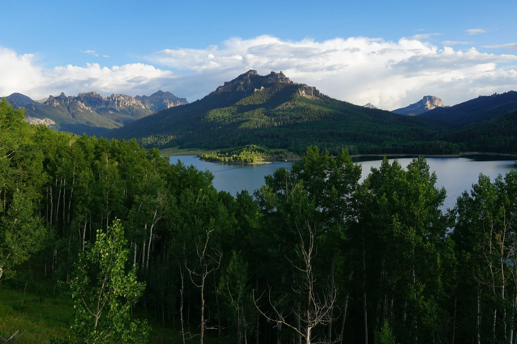There is a short trail to an overlook that you can pick up from the day use area, or from the campgrounds. A short walk through aspens take you an incredible overlook of the reservoir and the peaks looming behind. This is a stellar overlook and if you just have time to check out the overlook, it would be a worthy few minutes.