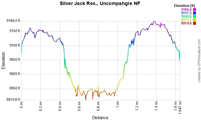 From Montrose, CO drive east on U.S. Highway 50 to County Road 858 (Forest Access/Silver Jack Reservoir sign). Turn south on County Road 858 and travel approximately 19 miles south. The campground turn off is first, but if you are not camping, continue down the road and turn right at the Silver Jack Overlook sign. At the end of the road is a bathroom and the trailhead.