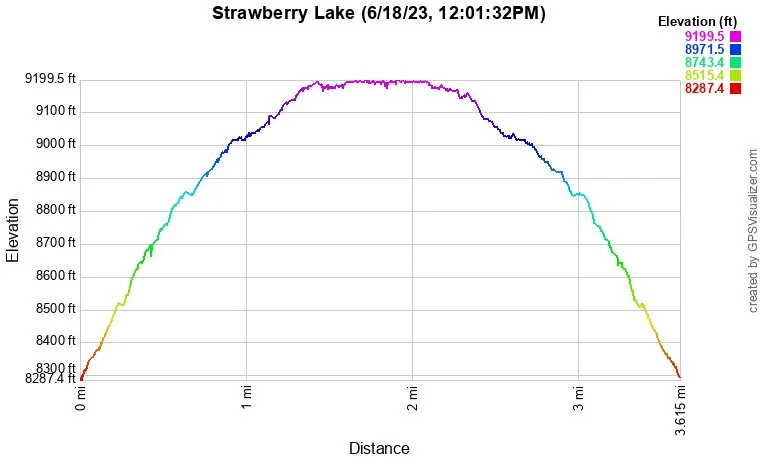 Strawberry Lake sits on a bench halfway between Lake Granby and the 10,000+ ft unnammed peaks south of the lake. The trail is relatively short at less than 2 miles, one way, and moderately steep, you gain about 900 ft. The hike takes effort but shouldn’t destroy your quads. Almost all the elevation gain happens in the fist mile and a half, through shady pine forest. There are limited views on this portion of the hike, but a pleasant creek keeps you company for the second half of the climb.