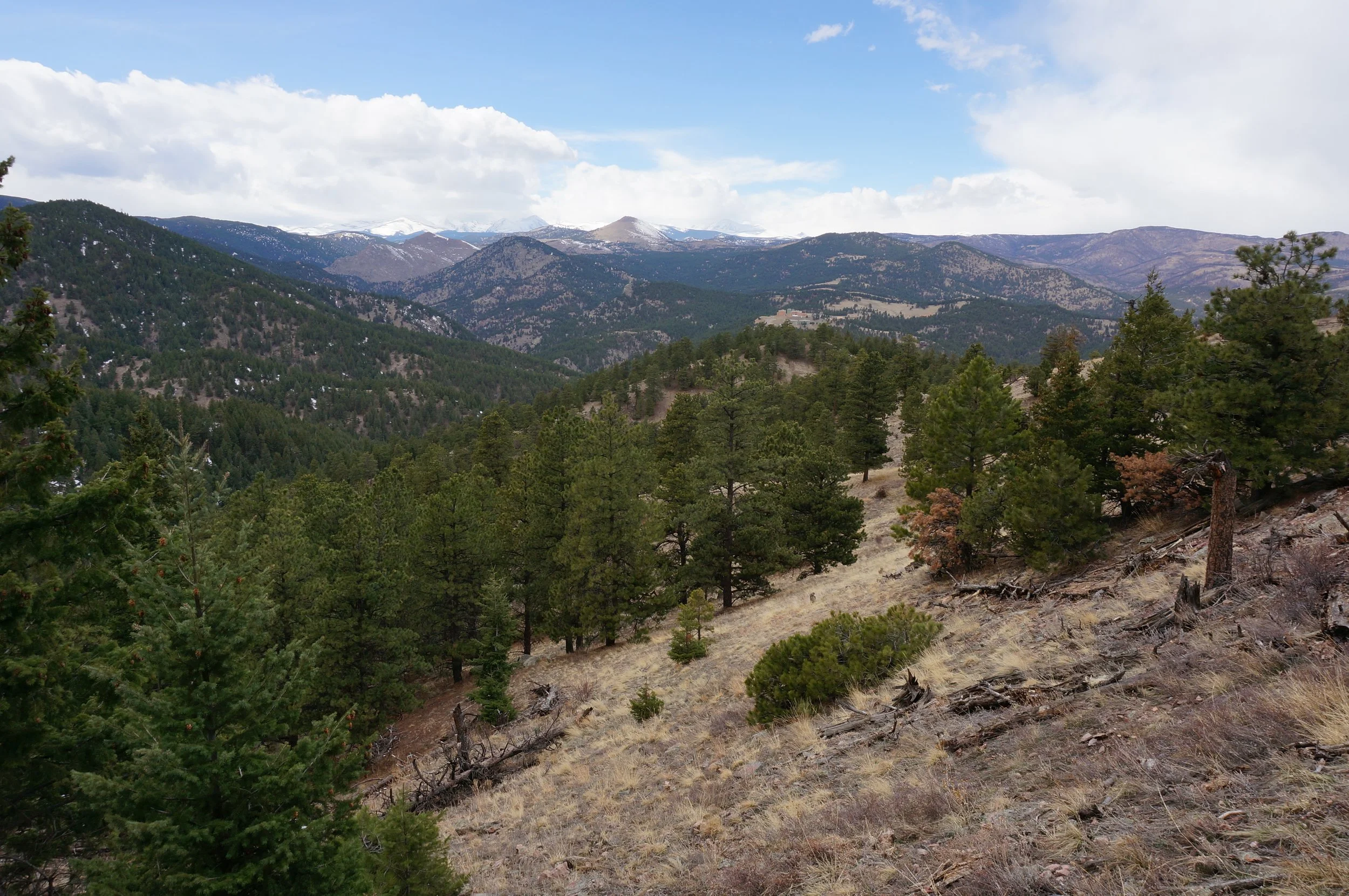 The Tenderfoot Trail is a nice and easy hike up on Flagstaff Mountain. The trail winds through the evergreen forest and leads to a great viewpoint of the Indian Peaks to the west. From the parking lot, find the Tenderfoot Trail on the west side of the lot. The trail descends steadily around the side of Flagstaff Mountain to the main viewpoint however the views start way before the actual viewpoint. From here the trail descends down the valley and hooks up with an old dirt road (Chapman Drive). Chapman Drive takes you back up the valley to the Realization Point Trailhead.