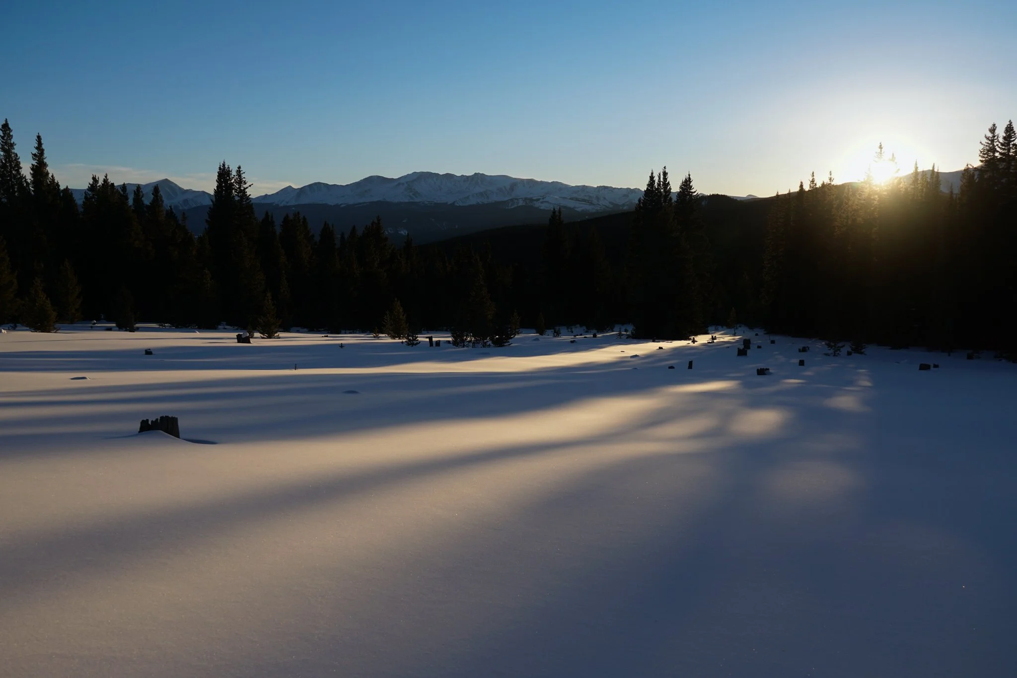From the Nordic Center, take the snowshoe trail to the west. It starts out along the wide Cooper Loop Ski Trail but soon enters the dense and beautiful forest for the majority of the hike to the Cookhouse. Depending on snow conditions you may or may not need your snowshoes here. The trail is very pretty with a steady elevation gain and sporadic views of the Sawatch Range through the trees. As you near the Cookhouse the views open up and you rejoin the Cooper Loop. At the Cookhouse the Sawatch are on full display for an incredible mountain views. Homestake Peak and Galena Mountain are front and center with Mount Oklahoma and Mount Elbert dominating the southern viewshed. While this hike is technically in the Mosquito Range, the views are all of the Sawatch Range, best of both worlds… This is a terrific destination and if you just hike here and return, that would be a worthy trip.