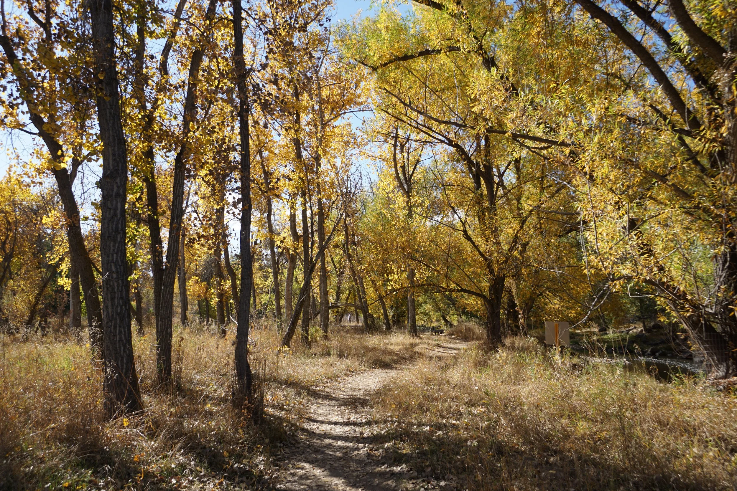 One of the prettiest portions of this area is the segment that starts at Kipling Street and extends west to Prospect Park and beyond to West and Bass Lakes. South of Clear Creek, the Clear Creek Trail consists of a level dirt path, but there are whole systems of narrow natural surface paths that provide quiet hiking through pristine cottonwood forests. This area is beautiful all year round but really pops in the fall. If you are lucky enough to live in the Wheat Ridge or Lakewood areas, this should be a common component of your mental and physical health routine.